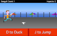 With the running, jumping and ducking essentially continuing indefinately until the player's luck runs out (that is, once five seagulls have hit you!) and the addictive urge to beat their highest score, this is my friends' favourite project of mine, and hopefully you will enjoy it too!